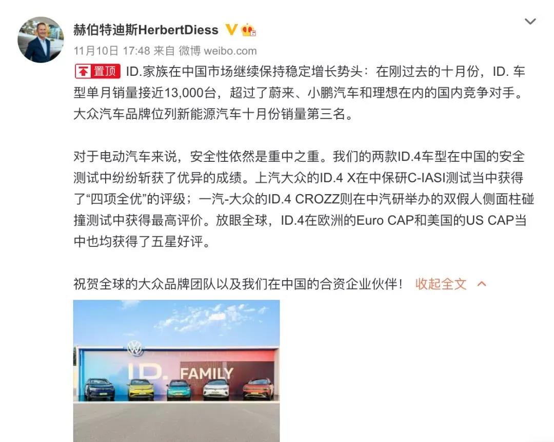 據(jù)了解,大眾旗下的德國工廠有茨維考工廠和德累斯頓工廠。而茨維考工廠主要負(fù)責(zé)生產(chǎn)大眾ID.3、ID.4、奧迪Q4 e-tron和Cupra Born等車型。值得注意的是,早幾日,大眾汽車集團(tuán)迪斯在社交平臺(tái)發(fā)文表示,ID.家族在中國市場繼續(xù)保持穩(wěn)定增長勢頭,十月ID.車型單月銷量為12376臺(tái),超過蔚來、小鵬汽車和理想等國內(nèi)競爭對(duì)手。不能看出此次停產(chǎn),也將導(dǎo)致這些車輛供應(yīng)在短時(shí)間內(nèi)受到限制。