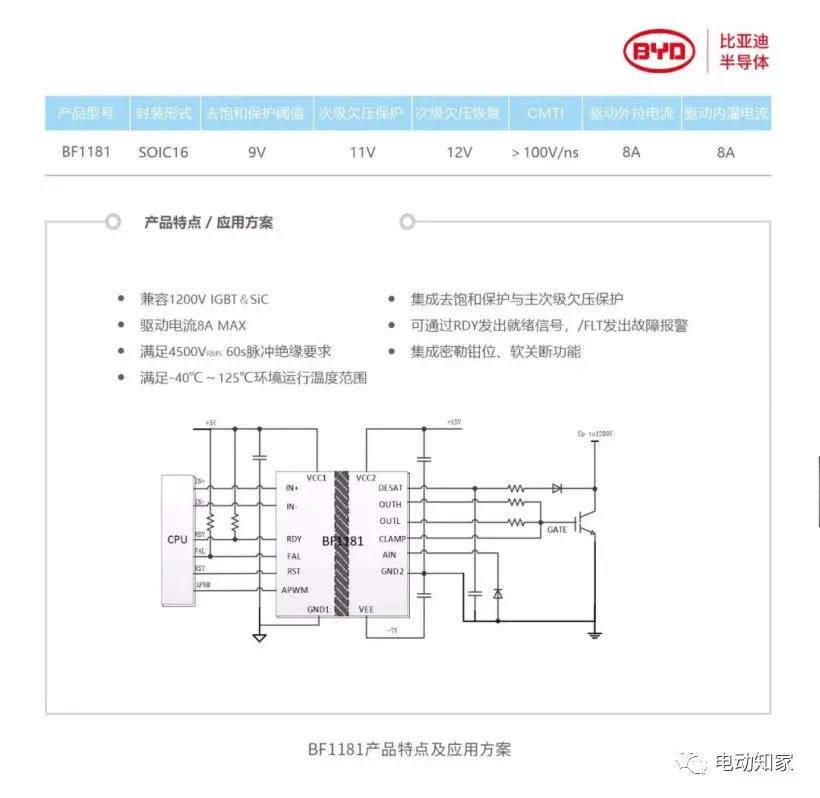 來自電動知家消息,12月14日,比亞迪半導體在先前研發(fā)成果的基礎上,成功自主研制并量產(chǎn)1200V功率器件驅動芯片BF1181,今年12月大規(guī)模生產(chǎn)并向各大廠商供貨。